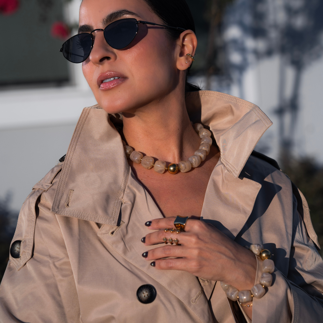 The Mount Olympus Bracelet is strength, simplified. A bold interpretation of goddess energy made wearable. With marbled oversized beads and a radiant golden sphere at its core, this elastic bracelet embodies both power and poise.