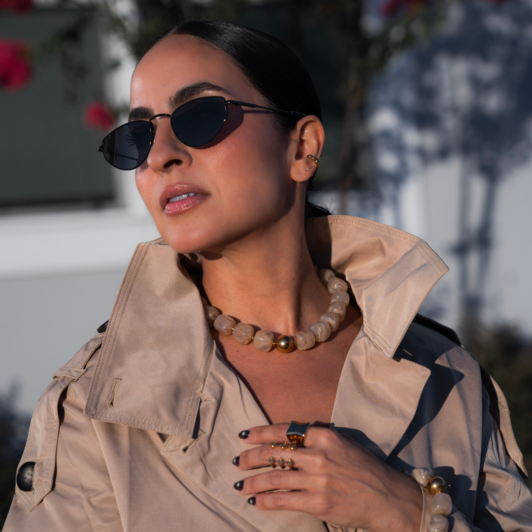 The Mount Olympus Necklace is a tribute to divine presence. She's a statement piece for the woman who leads with unpretentious authority. Oversized marbled beads meet a radiant golden sphere at the center, symbolizing her power, her discipline, and the light she carries wherever she stands.