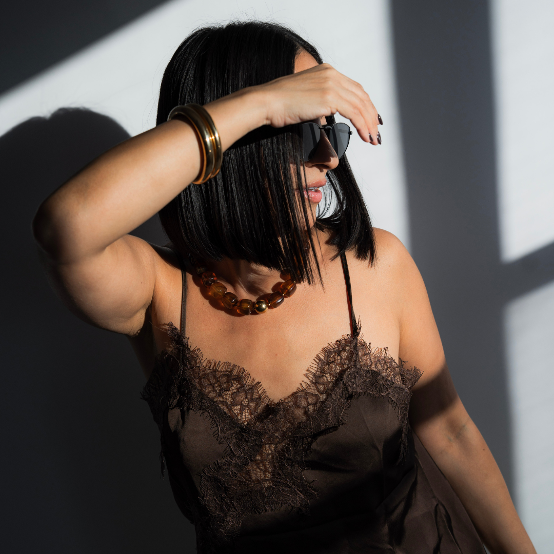 Each hue tells its own story: Mocha for fire and legacy, Pistachio green for rebirth and renewal, Nude for grace and grounding. Sculptural yet fluid, bold but wearable, it captures that rare balance between strength and softness... and the essence of modern goddess energy.