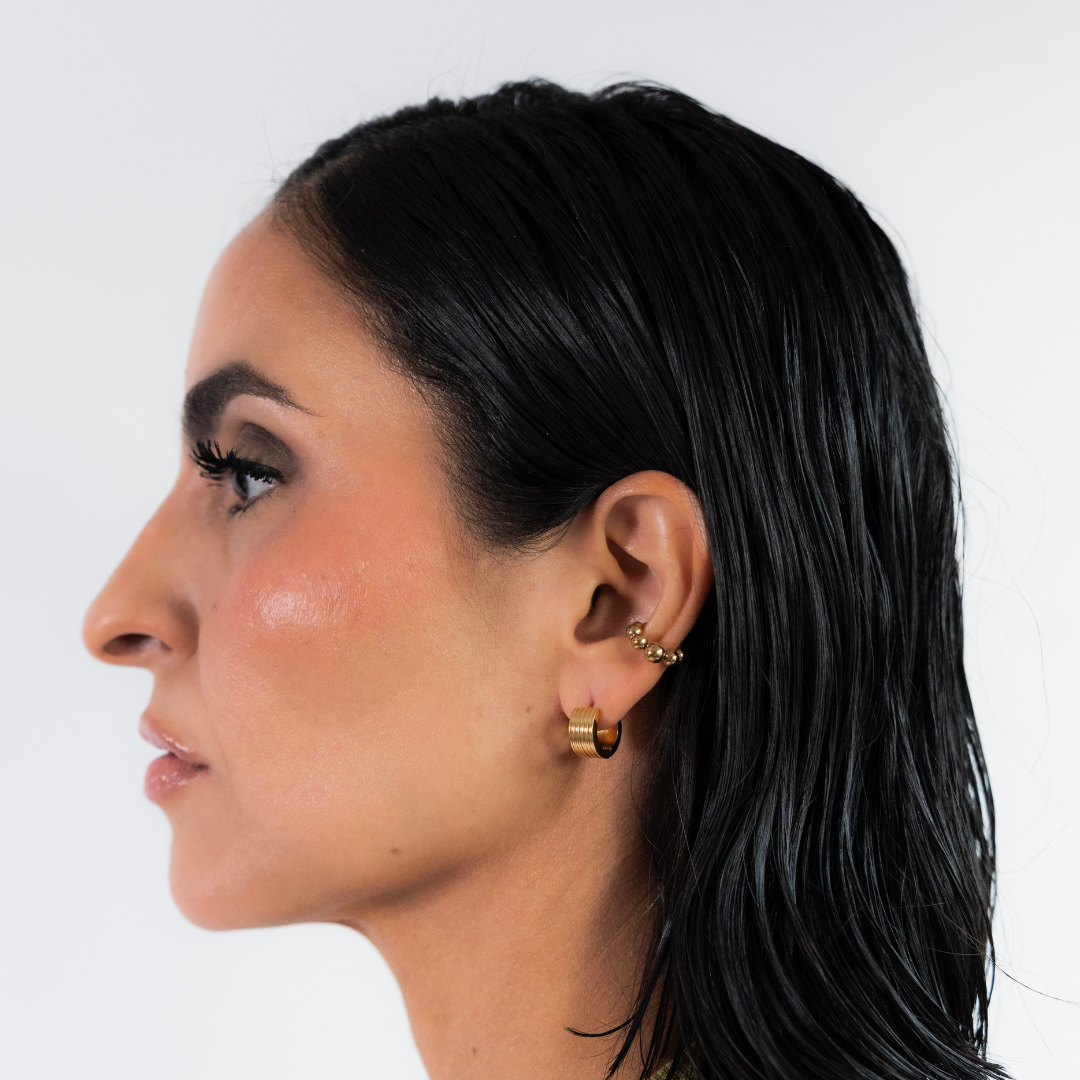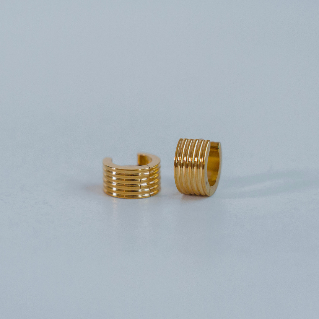 Minimal yet magnetic, The Axis Huggies feature a sleek dual-tone design — gold and silver bands in perfect symmetry. Their structured silhouette brings quiet confidence to any look, whether styled solo or layered into your everyday stack.